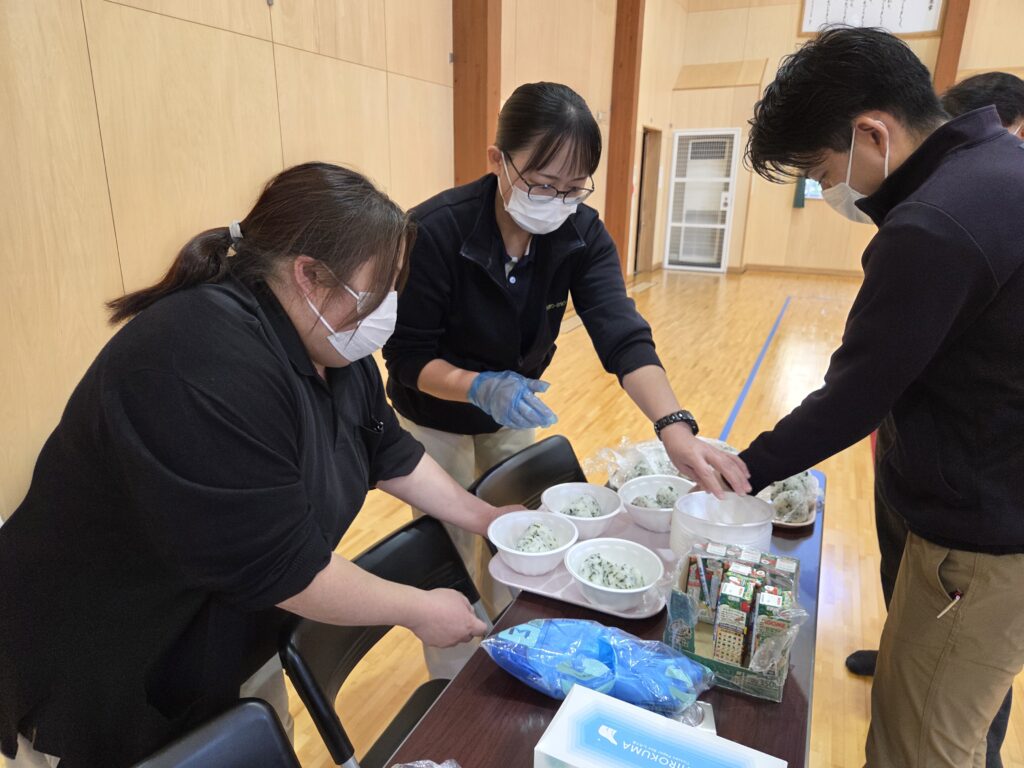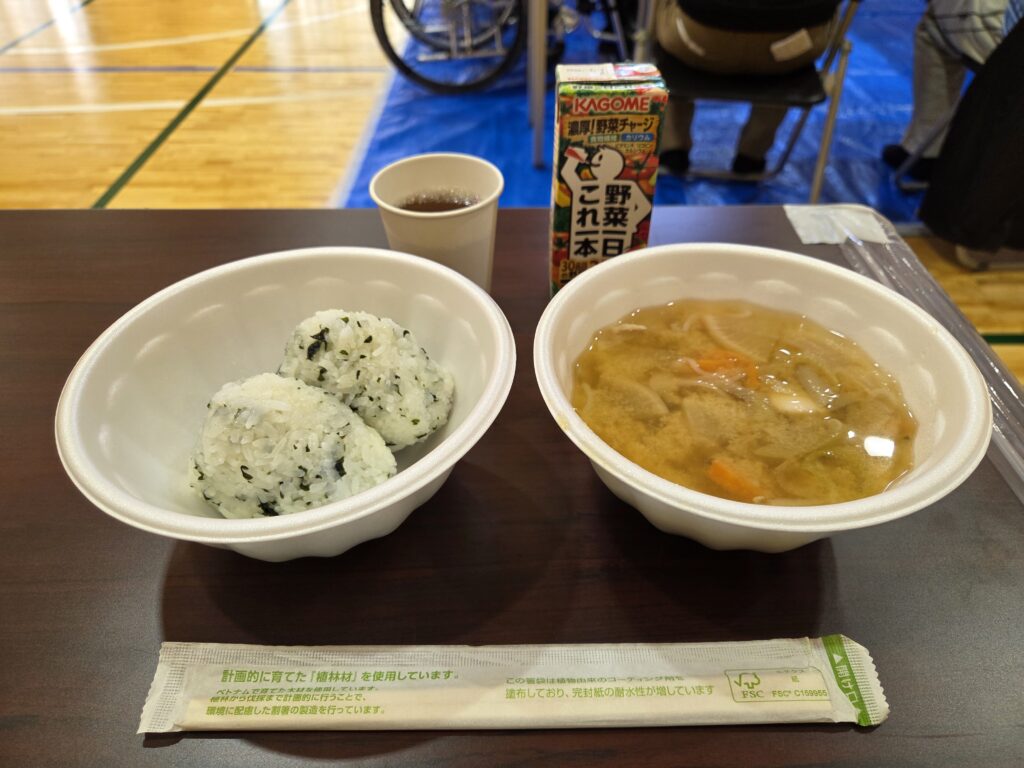 地震発生(M7.3)で停電と建物の一部被災したことを想定し避難訓練を実施しました。これまでに数回地震や水害等がありましたが、お陰様で施設への被害はなく避難所への避難ははじめての経験となりました。避難訓練に参加した利用者様は7名で職員の誘導に従い公用車に乗り込み、スムーズに避難所である下北手地区コミュニティセンターに無事移動することができました。また、昼食は非常食としておにぎり、豚汁を使い捨て食器で提供しました。参加した利用者様からは「避難所への避難ははじめてで参加できて良かった。安全に避難できて良かった」との声が聞かれました。